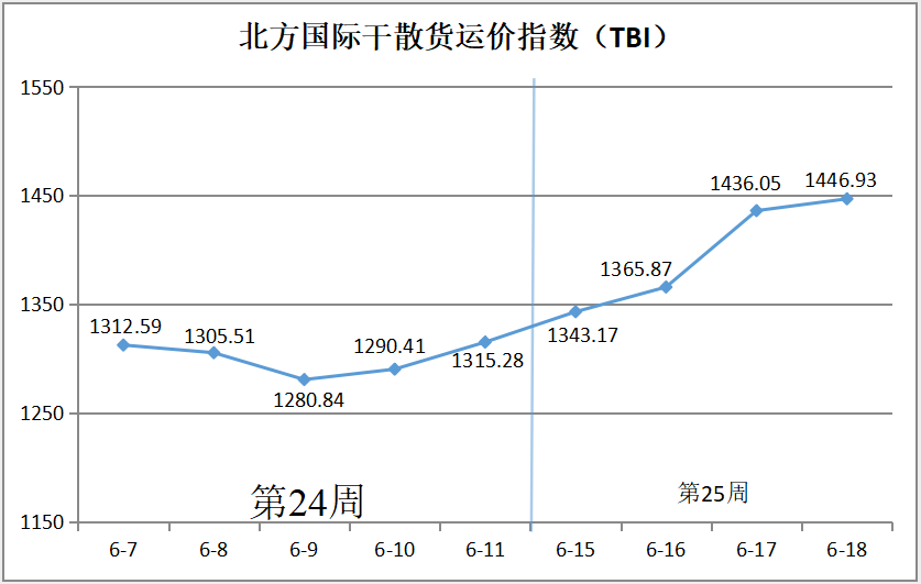 第25周,北方国际干散货运价指数(TBI)呈现大幅上涨态势。