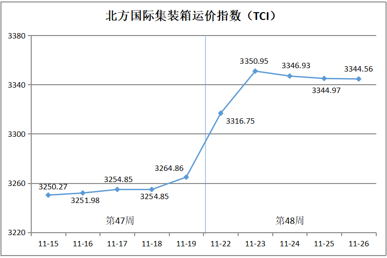 北方国际集装箱运价指数(TCI)分析报告(11月22日-11月26日)