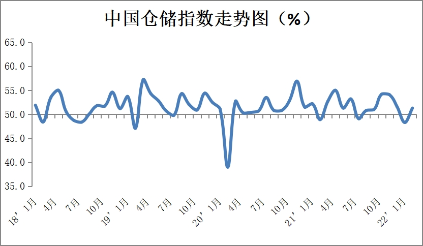 中国物流与采购联合会发布的2022年2月份中国物流业景气指数为51.2%,较上月回升0.1个百分点;中国仓储指数为51.3%,较上月回升3个百分点。