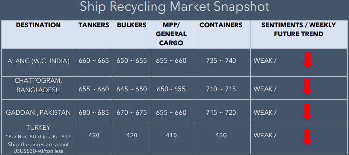 随着孟加拉国回收商从国际金属废料价格的下跌和船舶价格尚未看到的影响中寻找线索,市场的整体前景变得悲观。接下来的几周将是缓慢的,因为绝大多数回收者的胃口已经饱和,本月回收者将进入谨慎的购买模式。