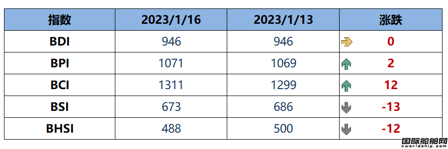 波罗的海干散货运价指数(BDI)周一持平于946点。波罗的海好望角型散货船运价指数(BCI)上升12点,或环比上升0.92%至1311点。波罗的海巴拿马型散货船运价指数(BPI)上升2点,或环比上升0.19%至1071点。波罗的海超灵便型散货船运价指数(BSI)下降13点,或环比下降1.90%至673点。波罗的海灵便型散货船运价指数(BHSI)下降12点,或环比下降2.40%至488点。