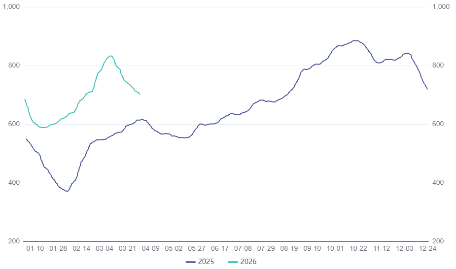 图4波罗的海干散货超级大灵便型运费指数(2025年01月-2026年03月)