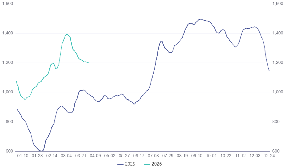 图1波罗的海干散货航运市场运费指数(2025年01月-2026年03月)